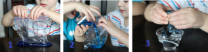 ŞİŞENİN AĞZINA HUNİ KONUR BUNA BULAŞIK DETERJANI YEMEK BOYASI , KARBONAT ILAVE EDİLİR. SİMLER EKLENİR VE ŞİŞENİN AĞZINA KADAR SİRKE İLAVE EDİLİR.
